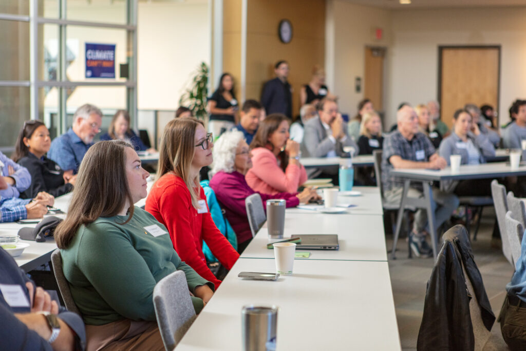 Los oradores abordaron programas de acción climática a nivel estatal y local, planes de energía comunitaria, desarrollo de energía renovable y estrategias de reducción de emisiones y desperdicio de alimentos, todos los cuales están avanzando a pesar del retroceso en cuestiones climáticas en Washington.